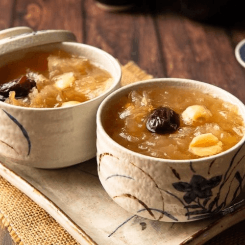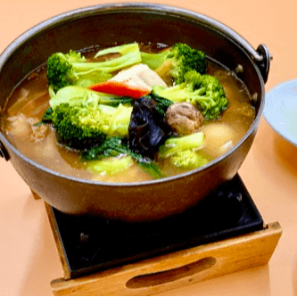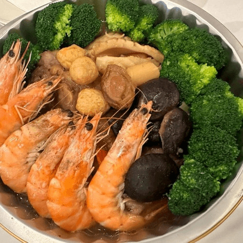 A Casserole of Yummy Goodness full of Seafood and Meat: Shrimp, Scallop, Calamari, Pork Feet, Baby Back Rib. Mushrooms, Chestnut, and Bamboo shoots.