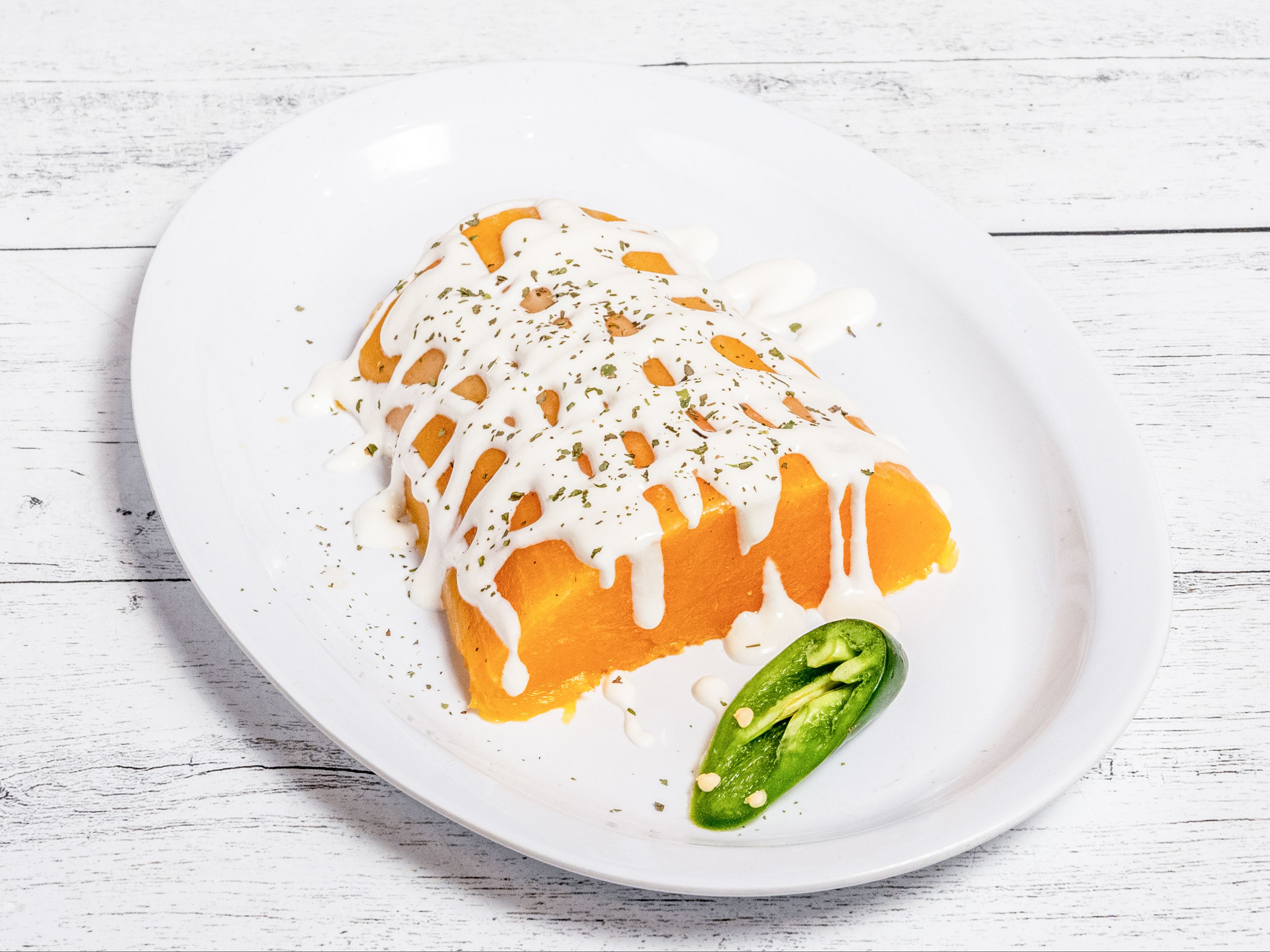 Roasted squash topped with garlic sour cream & dried mint served with Afghan bread.