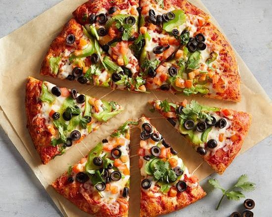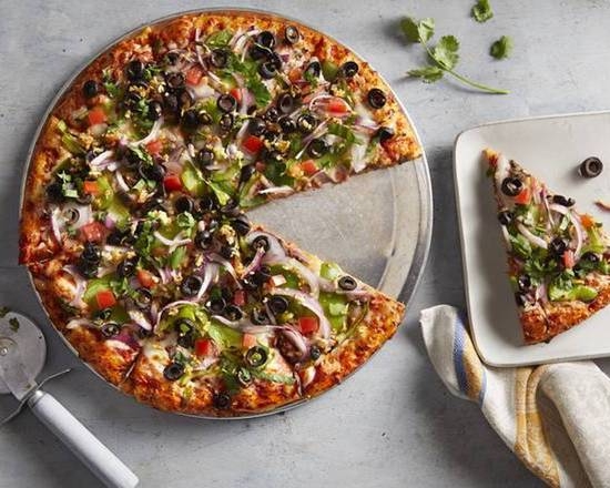 12" Gluten Free Crust, Mushrooms, Bell Peppers, Red Onions, Tomatoes, Olives, Jalapenos, Cilantro