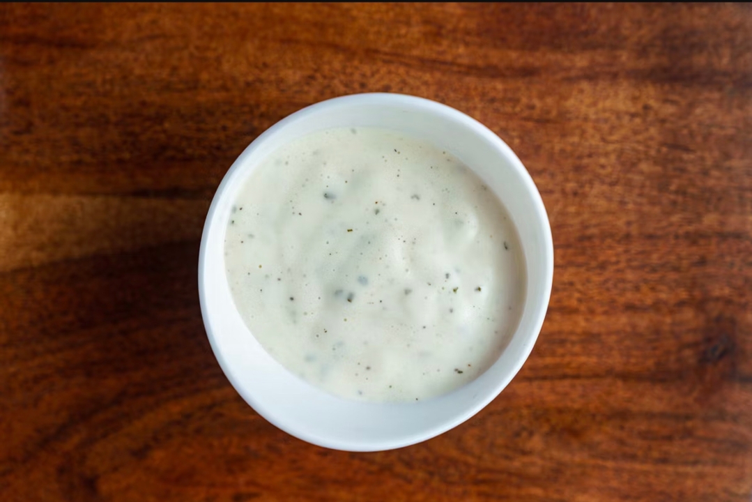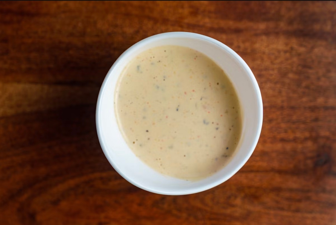 White garlic sauce(egg based), cheese, red onion, diced tomatoes, cauliflower, cilantro