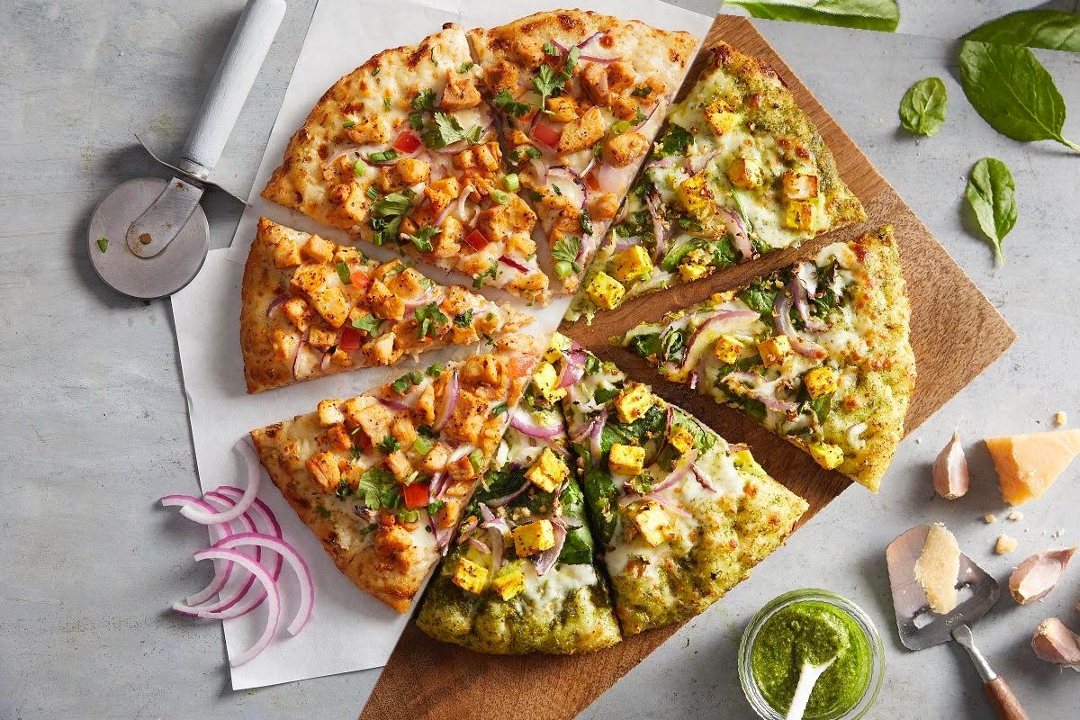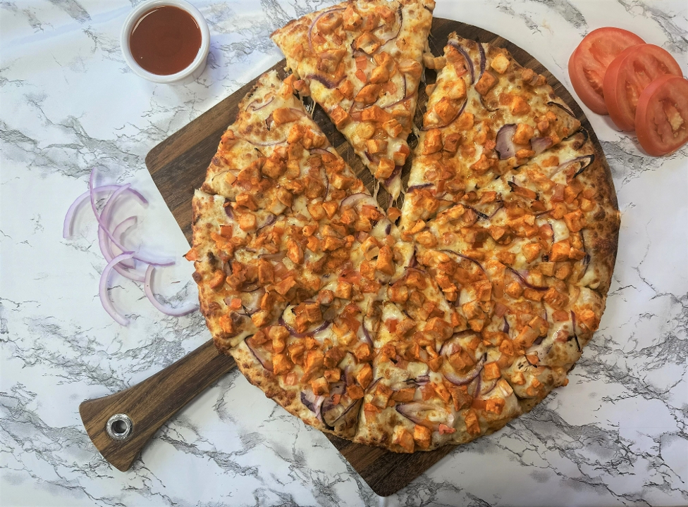 Try any of our two delicious Italian-American & Indian Fusion pizzas on one pizza at no additional cost. Picture is only for reference, customer must select two options.