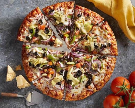 12" Gluten Free Crust, Mushrooms, Bell Peppers, Red Onions, Tomatoes, Olives, Artichokes