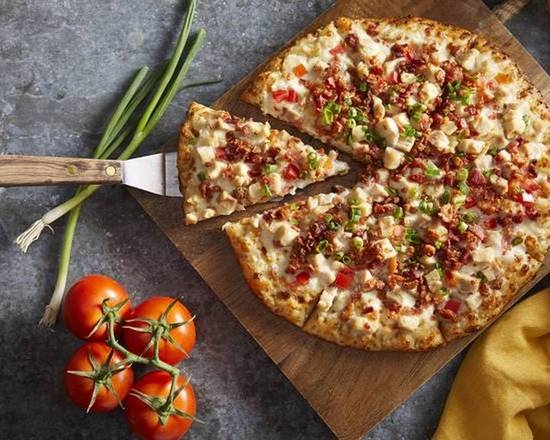White garlic sauce, cheese, diced tomatoes chicken, bacon, green onion