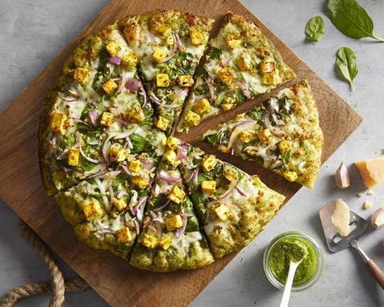 Pesto sauce, cheese, spinach, red onions, masala paneer, green chilies, ginger, garlic