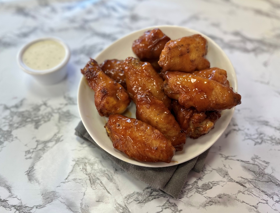White Sauce, Cheese, Diced Tomatoes, Red Onions, Buffalo Chicken
