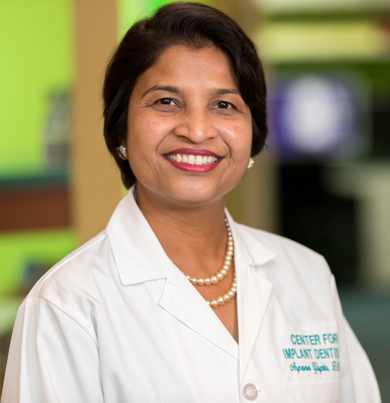 Dr. Arpana Gupta, DDS, MDS, is a highly skilled implant surgeon with over 25 years of experience in dentistry. A former professor and head of the Endodontics Department at Subharti Dental College, she co-founded a federally funded dental clinic in Massachusetts, serving underserved communities. Honored with the Health Leadership Award, Dr. Gupta specializes in dental implants and endodontics, transforming lives with advanced care and a compassionate touch.